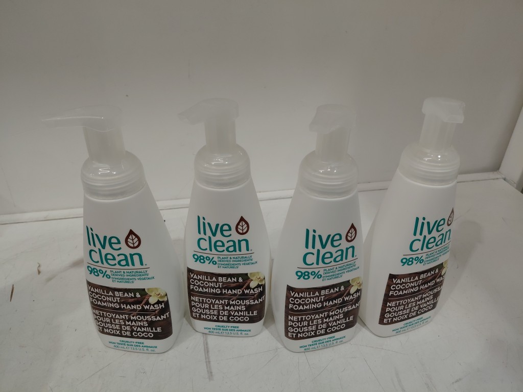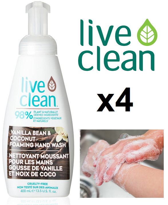 4 Live Clean Cruelty-Free Foaming Hand Wash - 400ml Each - Vanilla Bean and Coconut
