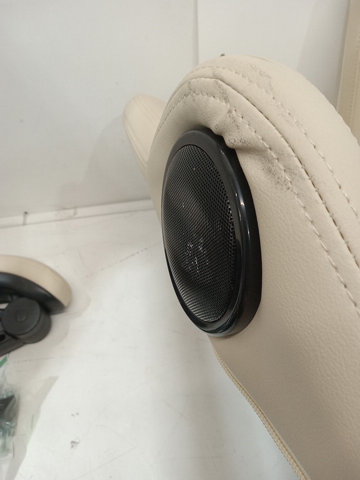 the chair is a bit dirty, and one of the speakers is dented. we also can't fully test it. please see photos