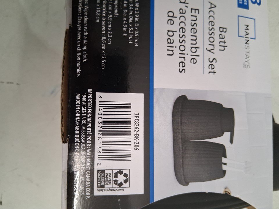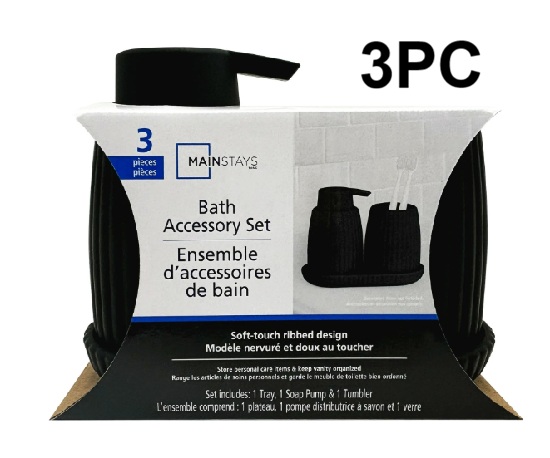 3PC Mainstays Bathroom Accessory Set - BLACK (MODEL: 3PC8262)