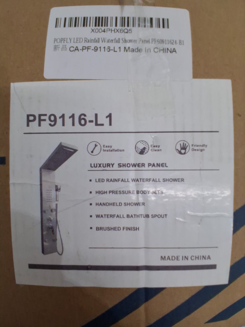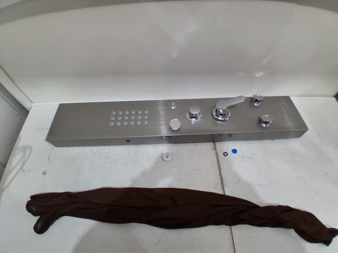 Missing the top rainfall head and the handheld sprayer, one shower head is snapped off, may be able to replace/glue back in place