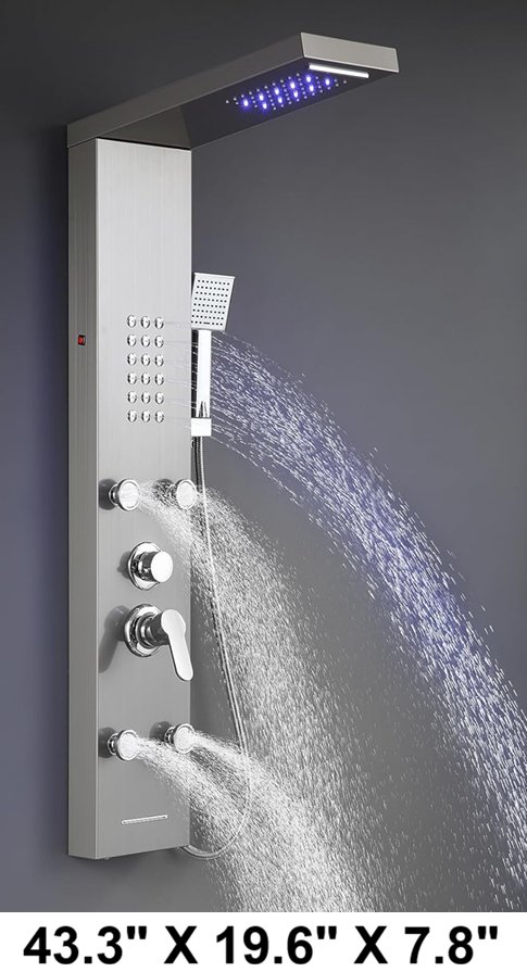 popfly led rainfall/waterfall shower head panel - 43.3"x19.6"x7.8" - brushed stainless
