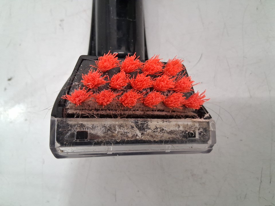 Cleaning solution missing from package. Water residue in tank and on brush indicates prior short-term use. (See photos)