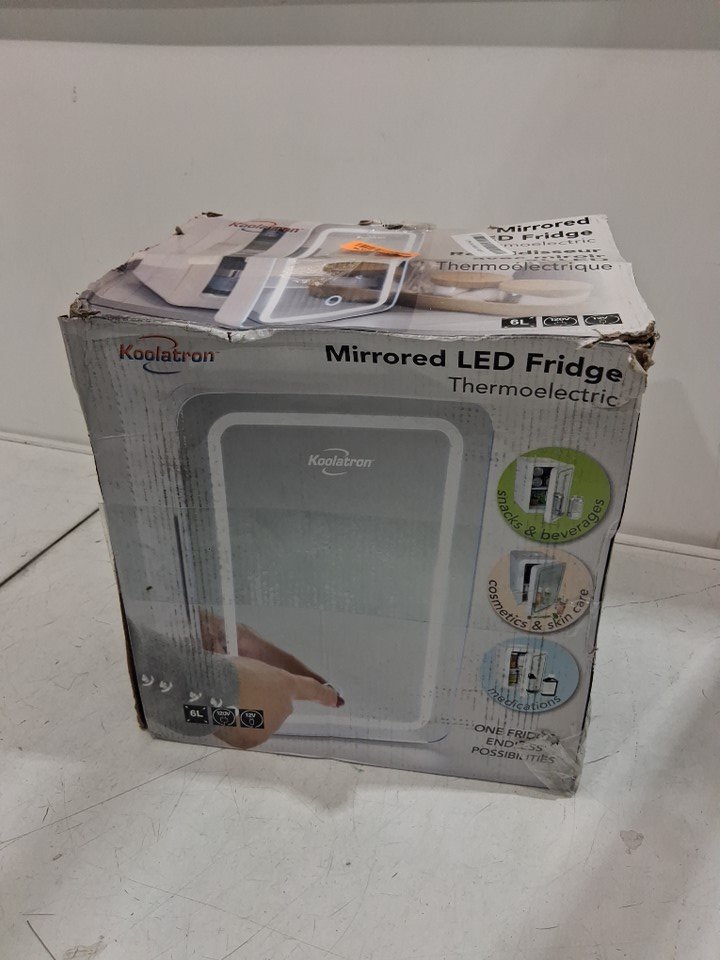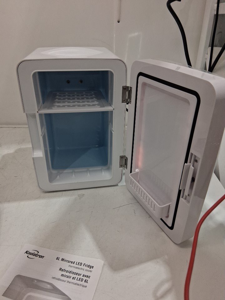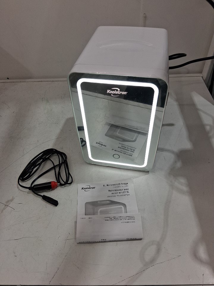 KOOLATRON COMPACT MIRRORED MINI FRIDGE WITH LED LIGHT - 6L - 120V AC - WHITE (MODEL: COSM6)