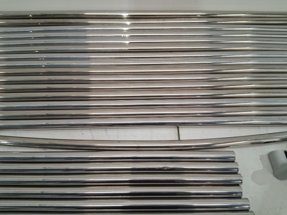 Product has some light residue and some dark spots throughout as well as a slight bend in one of the bars (See photos)