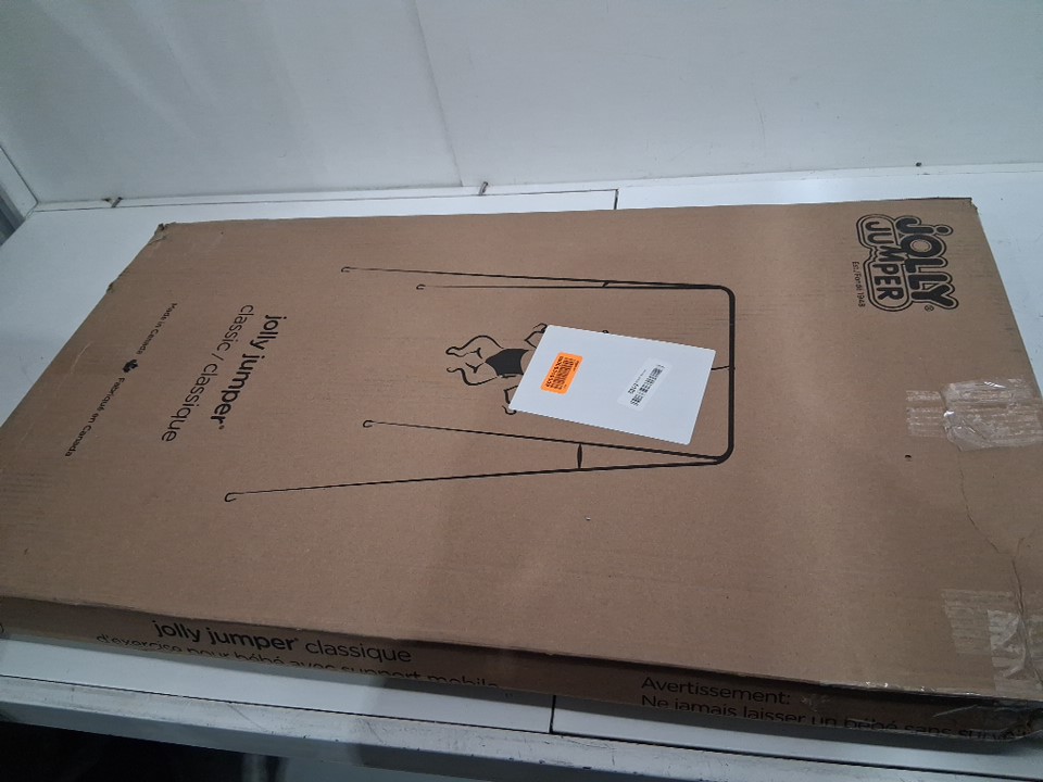 Jolly Jumper Classic Portable Baby Exerciser With Grey Fabric Saddle - 28 LBS Max - White/Grey (Model: 109)