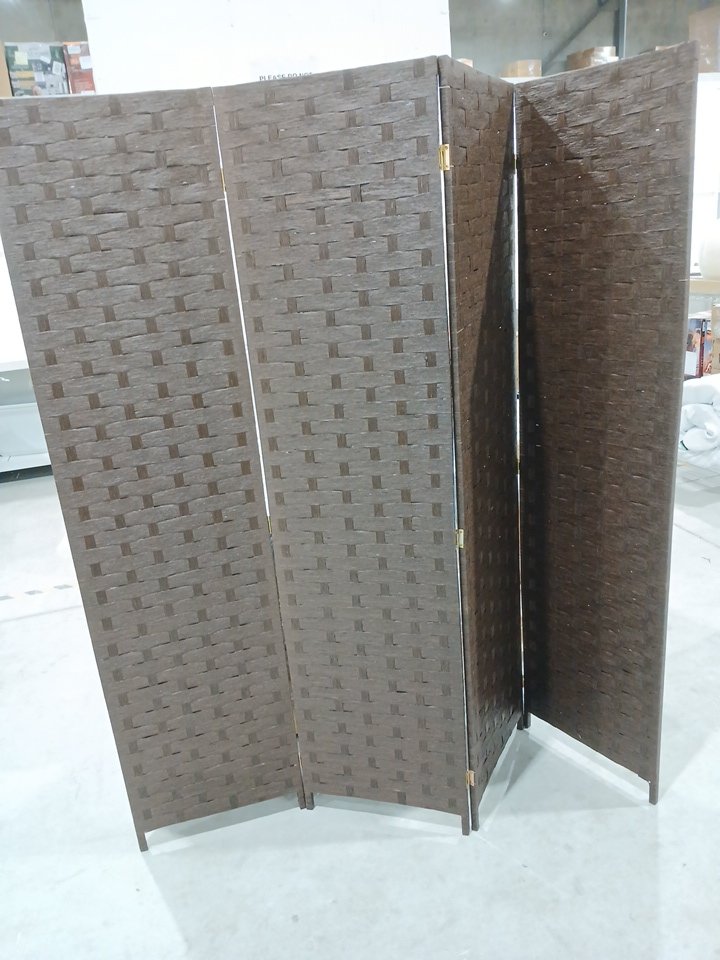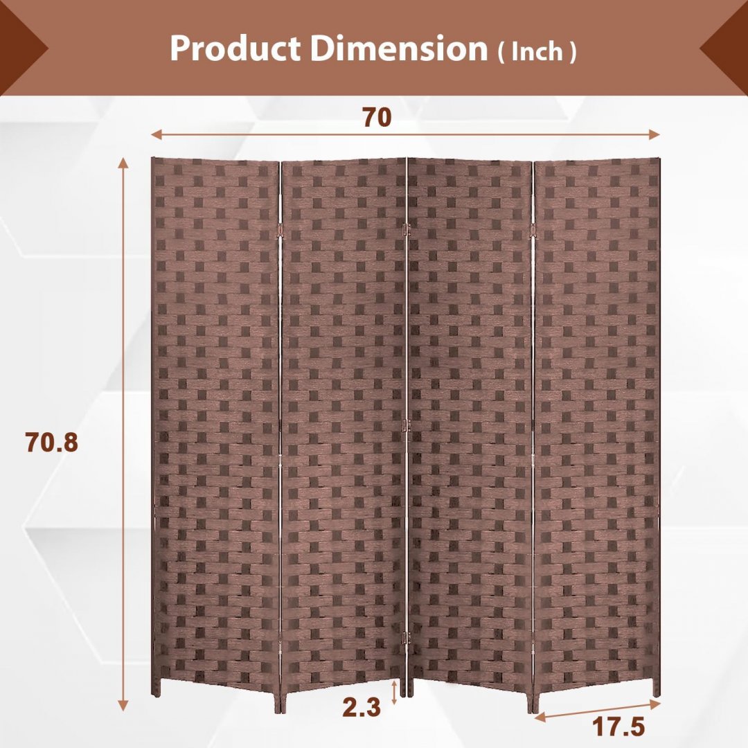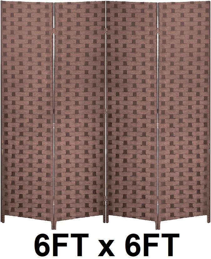 4 Panel Wood Mesh Room Wall Divider Screen - 6FT x 6FT - Brown