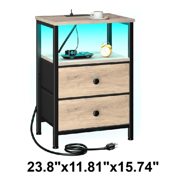 Small Bed Side Nightstand with Charging Station- 23" - black/natural (model: HETS02GY-1)