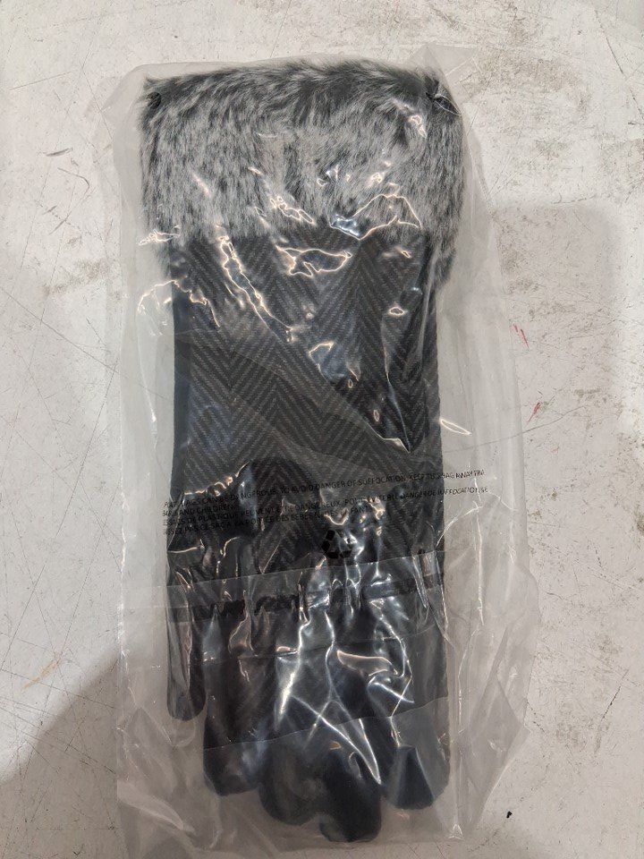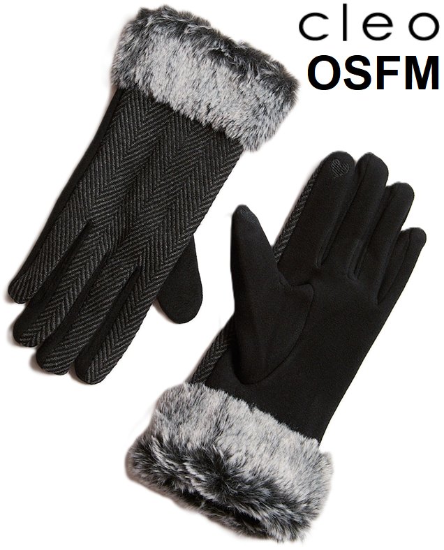 WOMEN'S CLEO Cloth Herringbone Detail winter Gloves with fur - osfm - black / grey