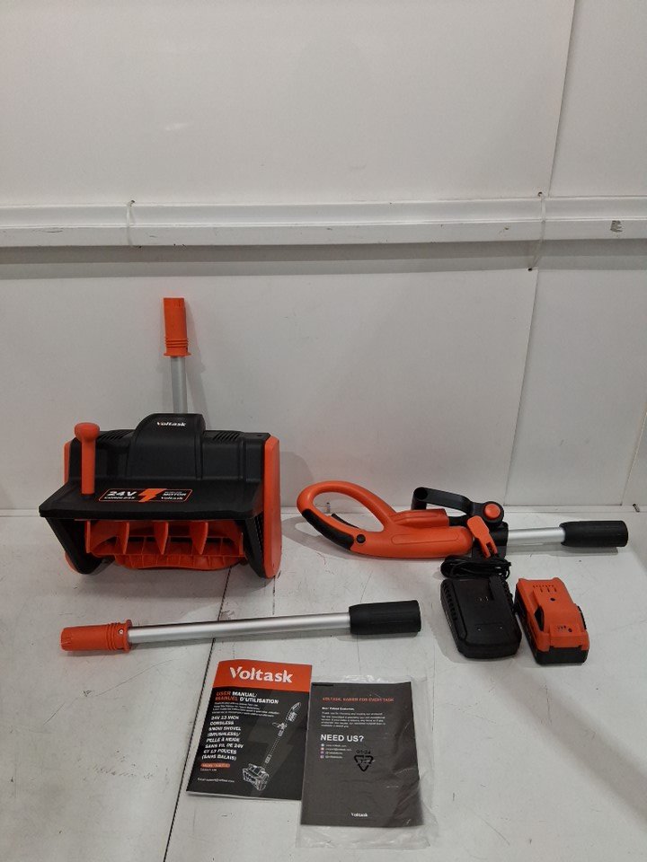 VOLTASK CORDLESS ELECTRIC SNOW SHOVEL WITH 1 BATTERY & CHARGER - 13" - 24V - BLACK/ORANGE (MODEL: css007-130or-cavk)