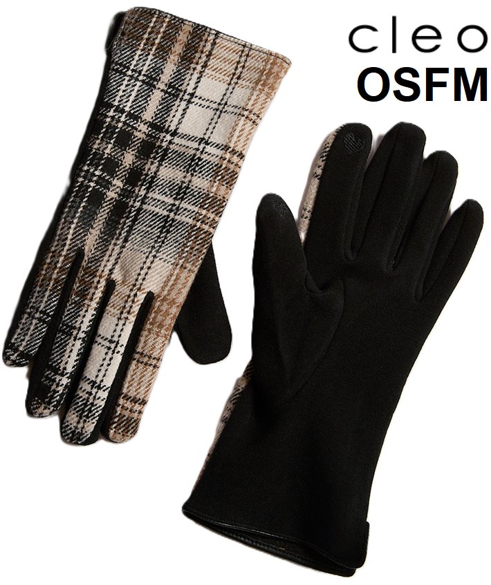 WOMEN'S CLEO Cloth plaid Detail winter Gloves - osfm - camel brown / black