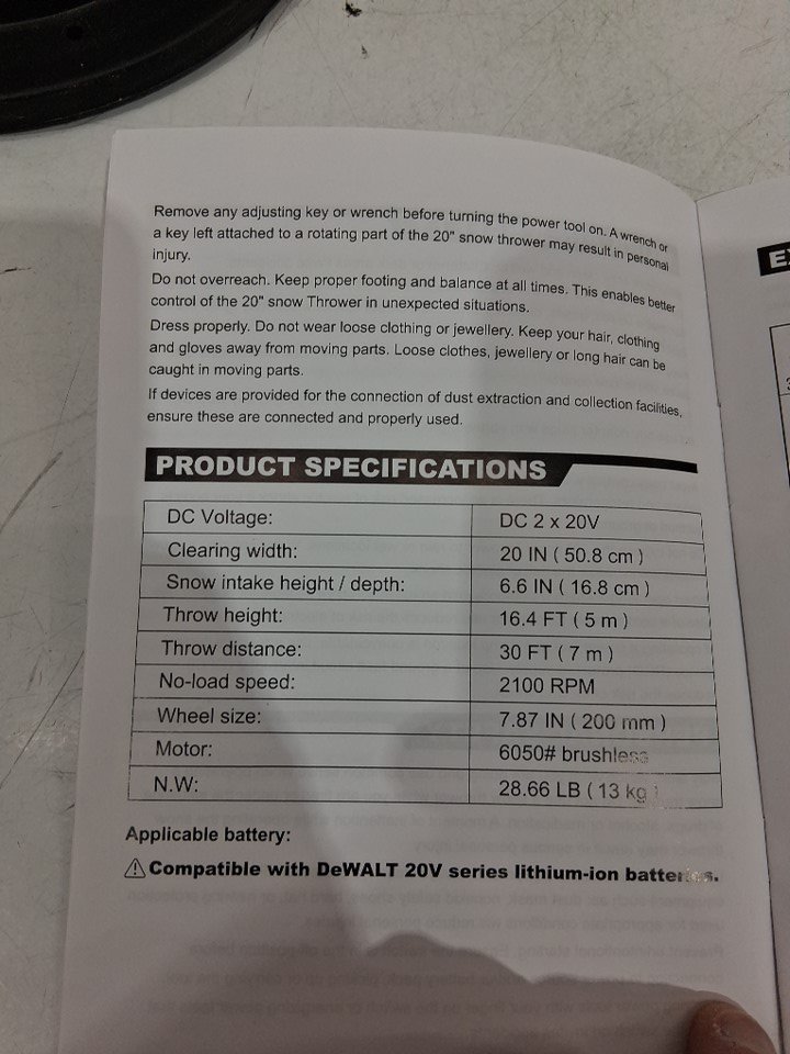 Houselife Brushless Cordless snow blower for use with DeWalt batteries - 20v x 2 - Black/Gray/Yellow - (Model: HL-SXJ-01)