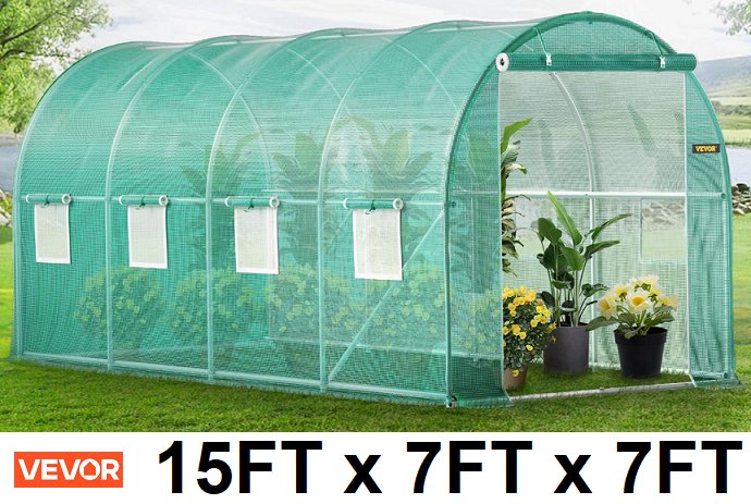 VEVOR Dome Tunnel Greenhouse - 15FT x 7FT x 7FT - Teal Green