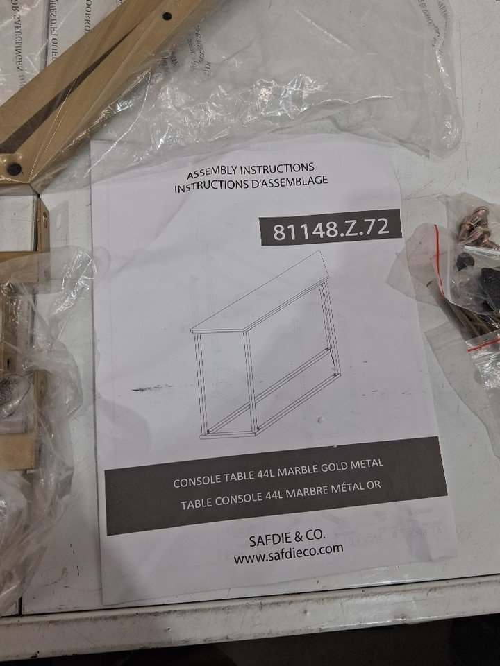 Safdie & Co. Marble and Gold Entryway Console Sofa Side Table - 44" - Gold/White - (Model: 81148.Z.72.)