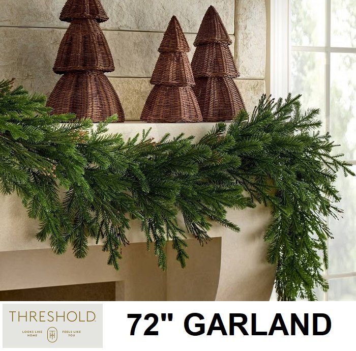 THRESHOLD "FRESH CUT" FAUX GARLAND, DECORATIVE HOLIDAY GARLAND - 72" LENGTH - GREEN
