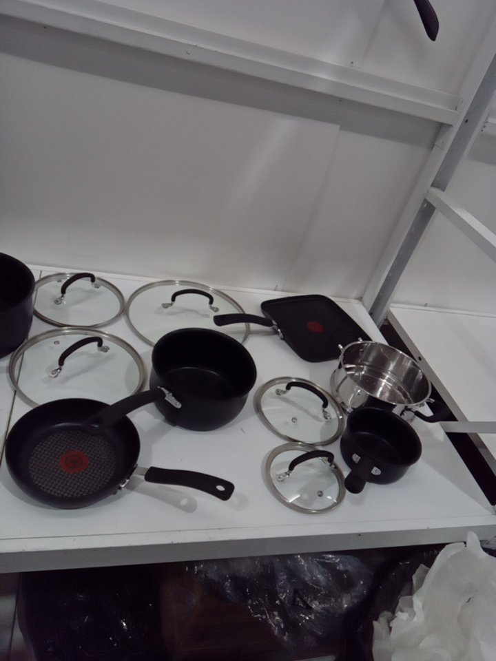 17PC T-FAL Ultimate Hard Anodized Scratch Resistant Titanium Nonstick dishwasher safe cookware set - 17PC - black/grey (model: ‎2100093984)