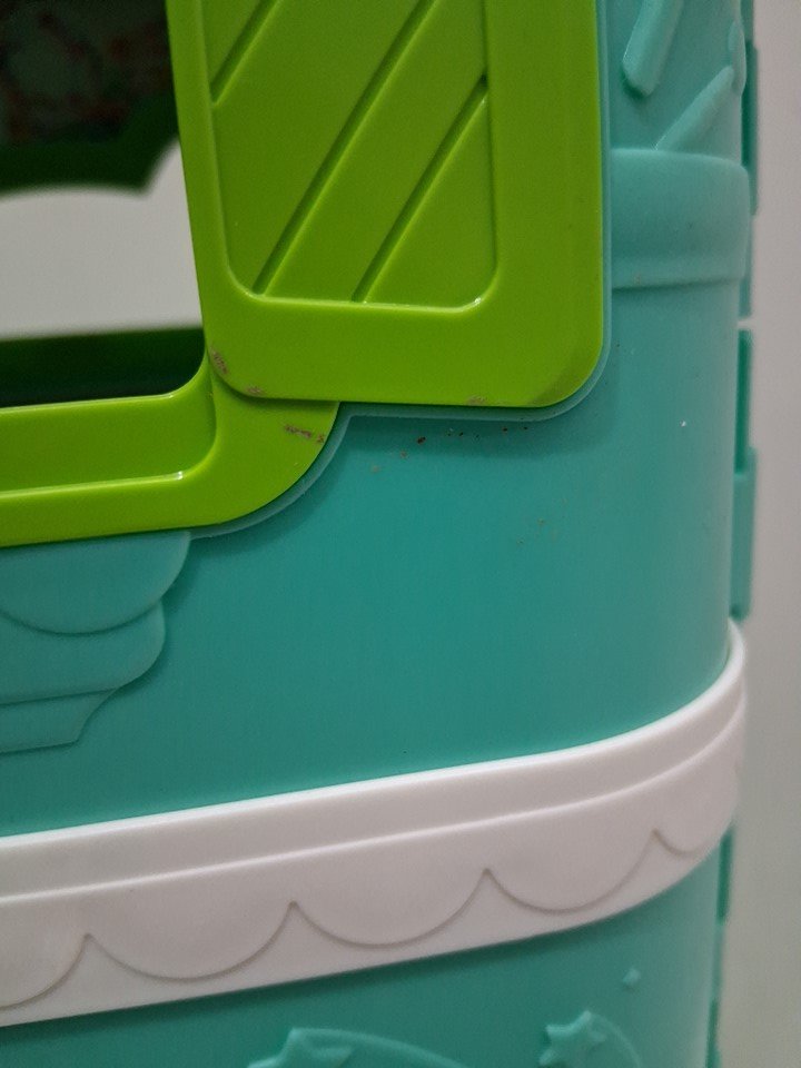 item has some residue from light use, also is missing a some pieces ( see manual in photos) bottom slide piece looks distressed ( see photos )