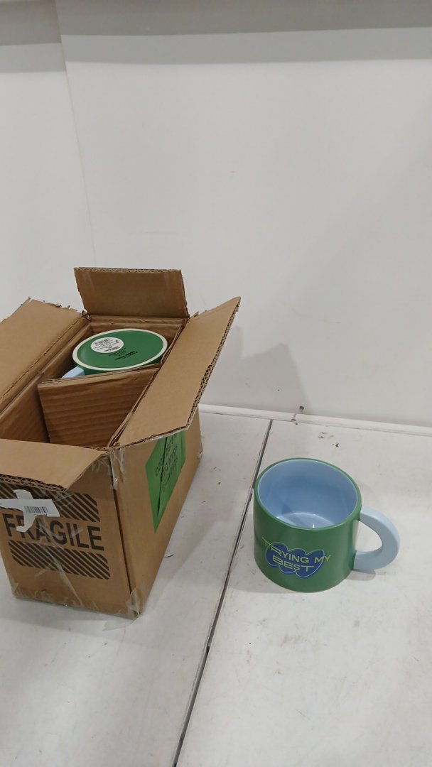 4 room essentials stoneware " trying my best " mug - 19oz - green/blue