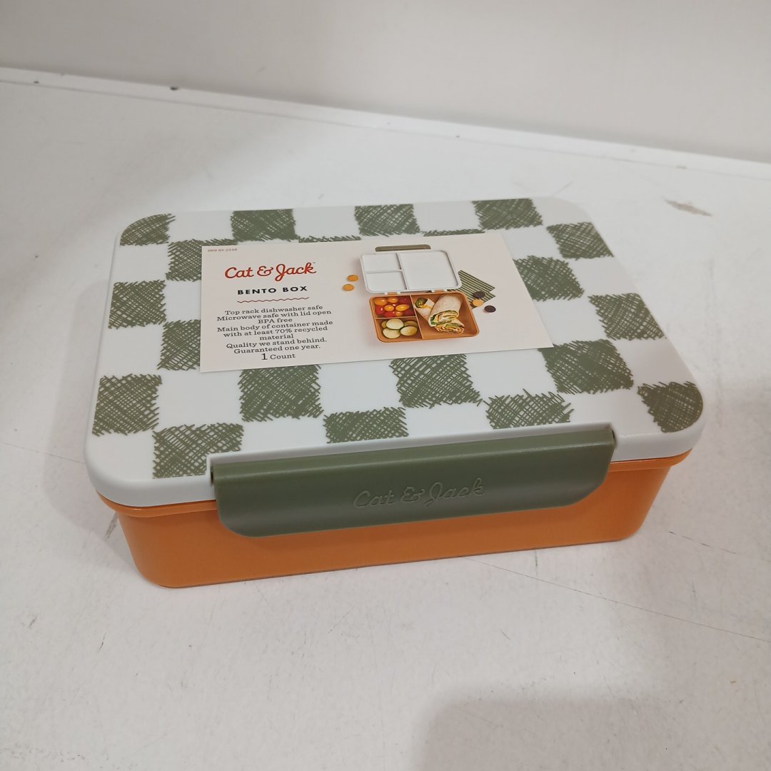 Cat&jack bento box lunch box, dishwasher safe & BPA free plastic - 8" - Checkered, Orange