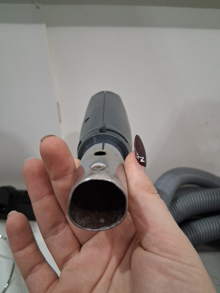 item has some scratches and remaining dirt on hose and around connection piece as well as some slight deformation around nozzle head. there is also some dirt and scratches on the bottom of the attachment head from prior light use
