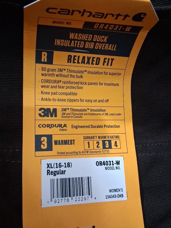 Women's Carhartt Relaxed Fit Washed Duck Insulated Bib Overalls - extra large (16-18) - brown (STYLE: OR4031-W)