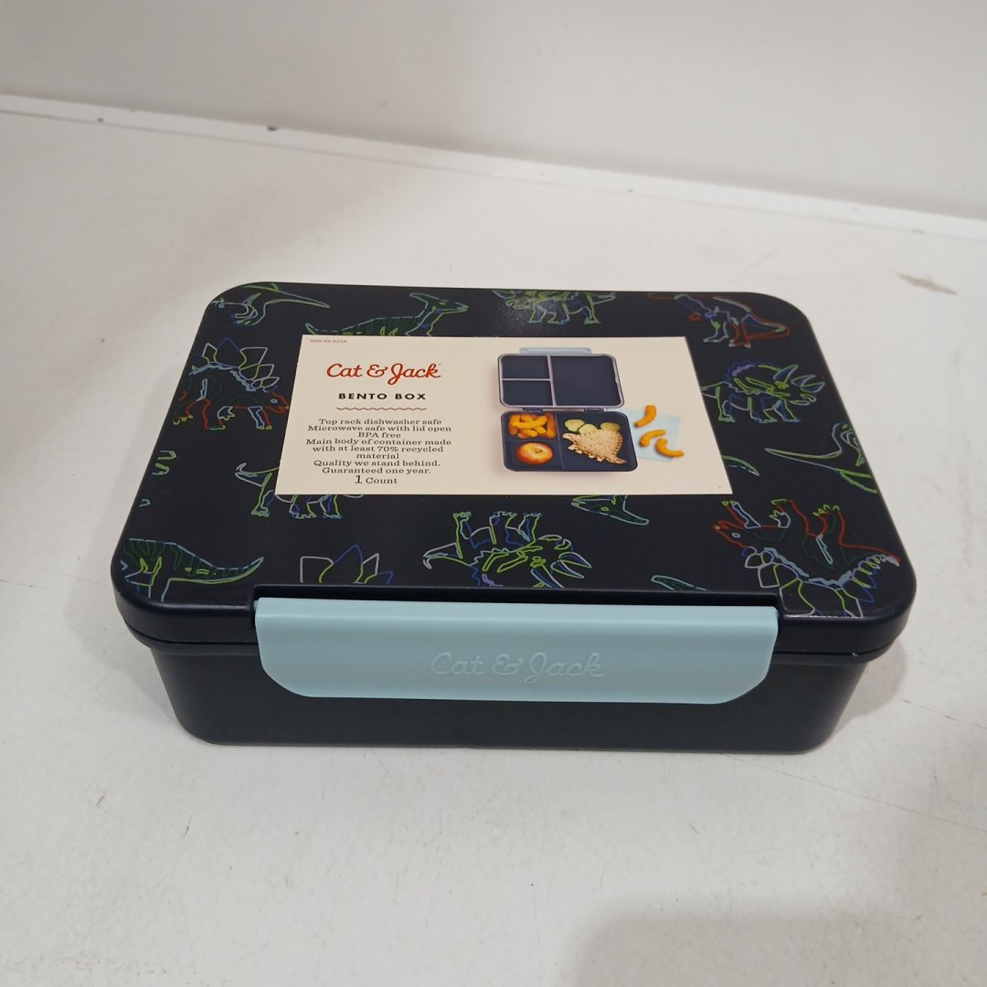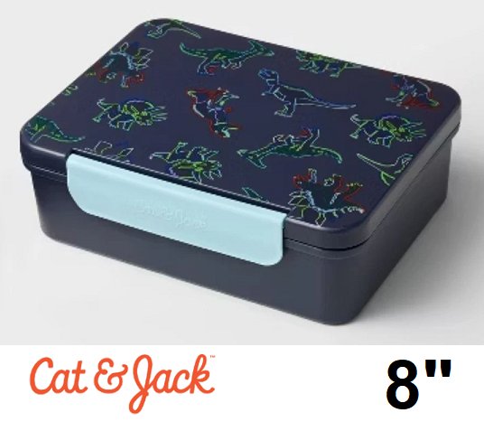 Cat&jack bento box lunch box, dishwasher safe & BPA free plastic - 8" - Dinosaur, Dark Blue