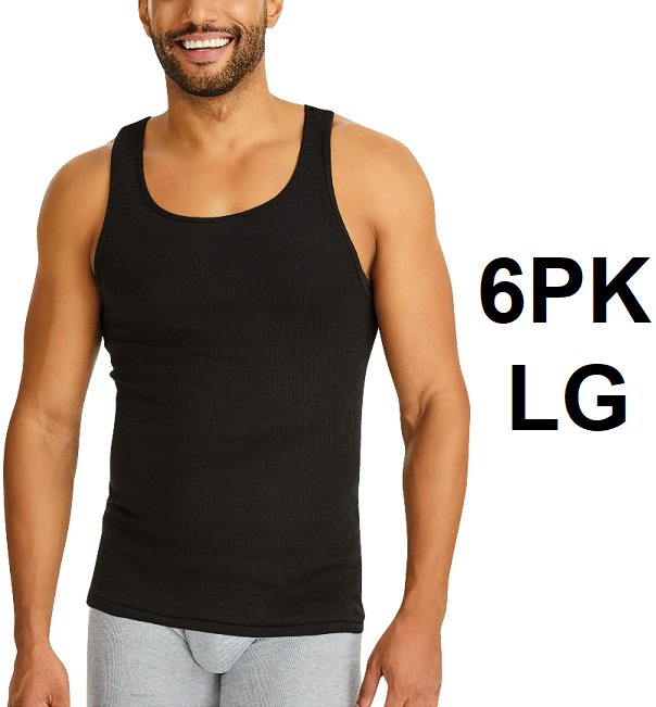 6PK MEN'S HANES COMFORTSOFT TANKS - LARGE - BLACK