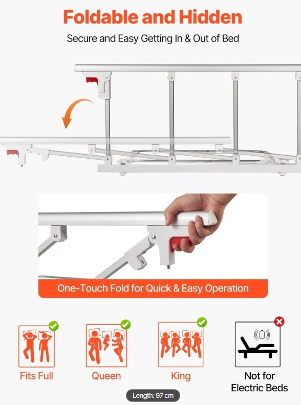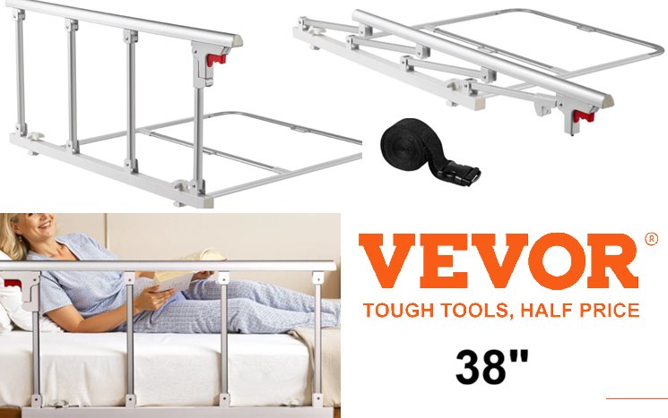 VEVOR Foldable Bed Assist Rail with Fixing Strap - 38" - WHITE (MODEL: hfx-5124-1)
