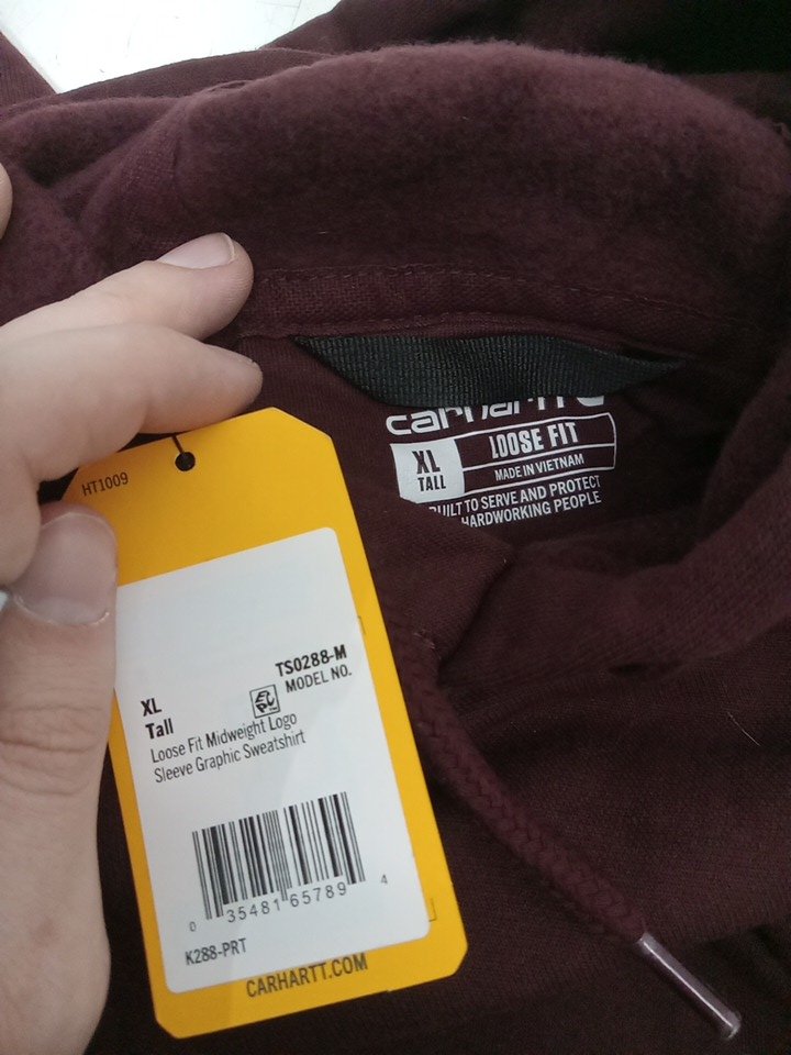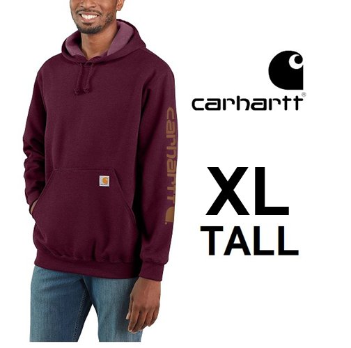 MEN'S CARHARTT LOOSE FIT MIDWEIGHT logo sleeve graphic hoodie sweatshirt - Extra Large TALL - PORT (model: ts0288-m)