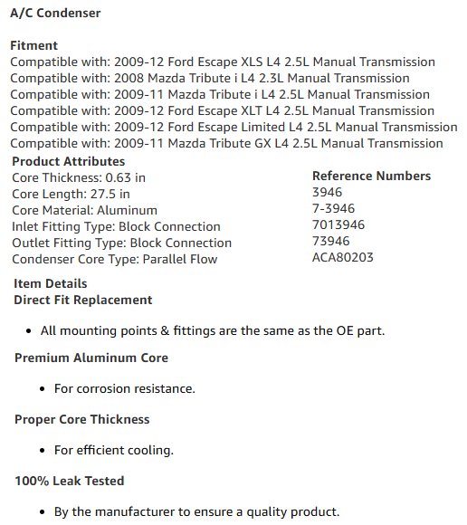 TRQ Air Conditioning A/C Condenser - COMPATIBLE WITH VARIOUS FORD & MAZDA MODELS *SEE PHOTOS FOR COMPATIBILITY* (MODEL: ‎ACA80203)