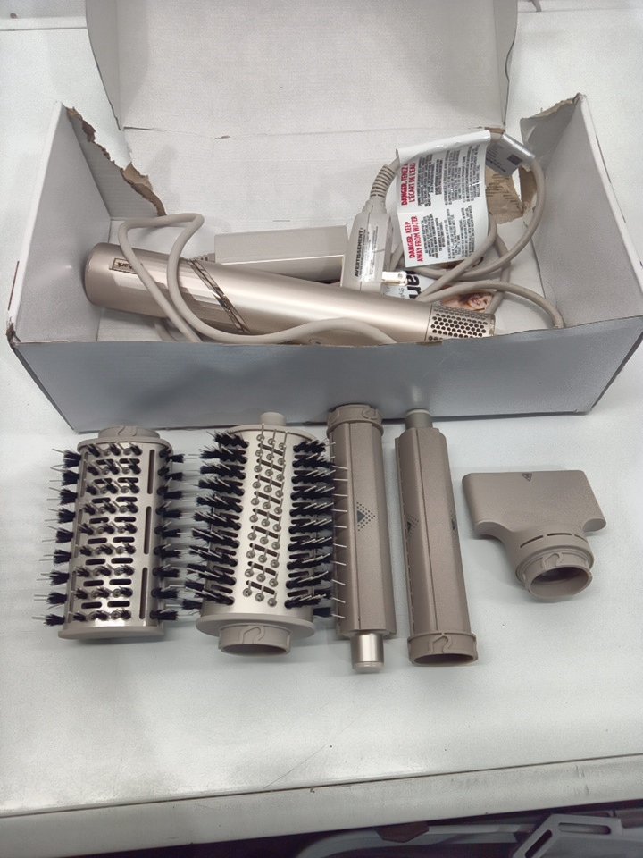product appears to be previously used, brush attachments appear used, packaging in distressed condition