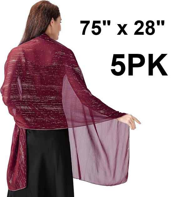 5PK Women'S Ladiery Lightweight Soft Chiffon Sparkly Rhinestones Formal Scarf Shawl Wraps FOR Evening DressES - 75" x 28" - RED