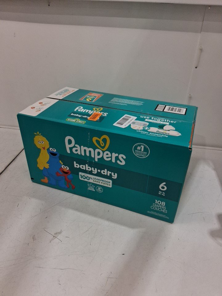 108pk pampers baby-dry leakproof disposable diapers - size 6 (35+ lb) - sesame street