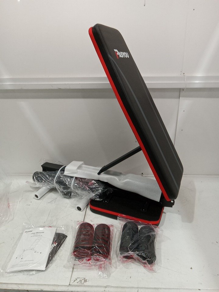 PASYOU ADJUSTABLE WEIGHT BENCH FOR FULL BODY WORKOUTS - FOLDABLE AND PORTABLE DESIGN, FOR AT HOME GYMS - 500LB WEIGHT LIMIT - 15.7" X 55" X 20" - BLACK/RED (MODEL: PA300)