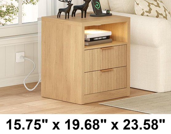 mahancris 2 drawer wooden night stand with Charging Station and LED Light- 15.75" x 19.68" x 23.58"- natural wood- (model:‎ETNA254E01)