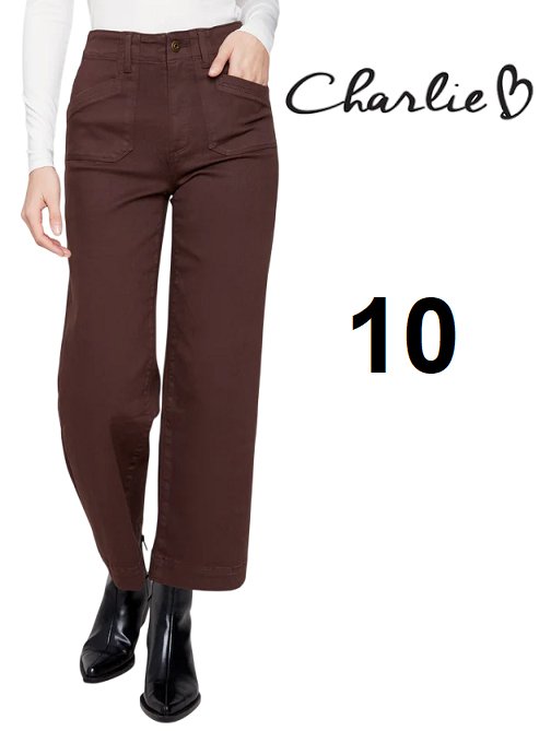 womens charlie b Cropped Wide Leg Stretch Twill Pants - 10 - Mocha