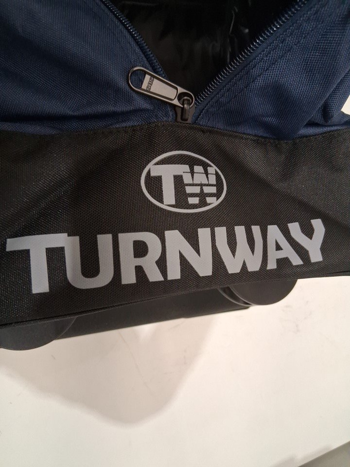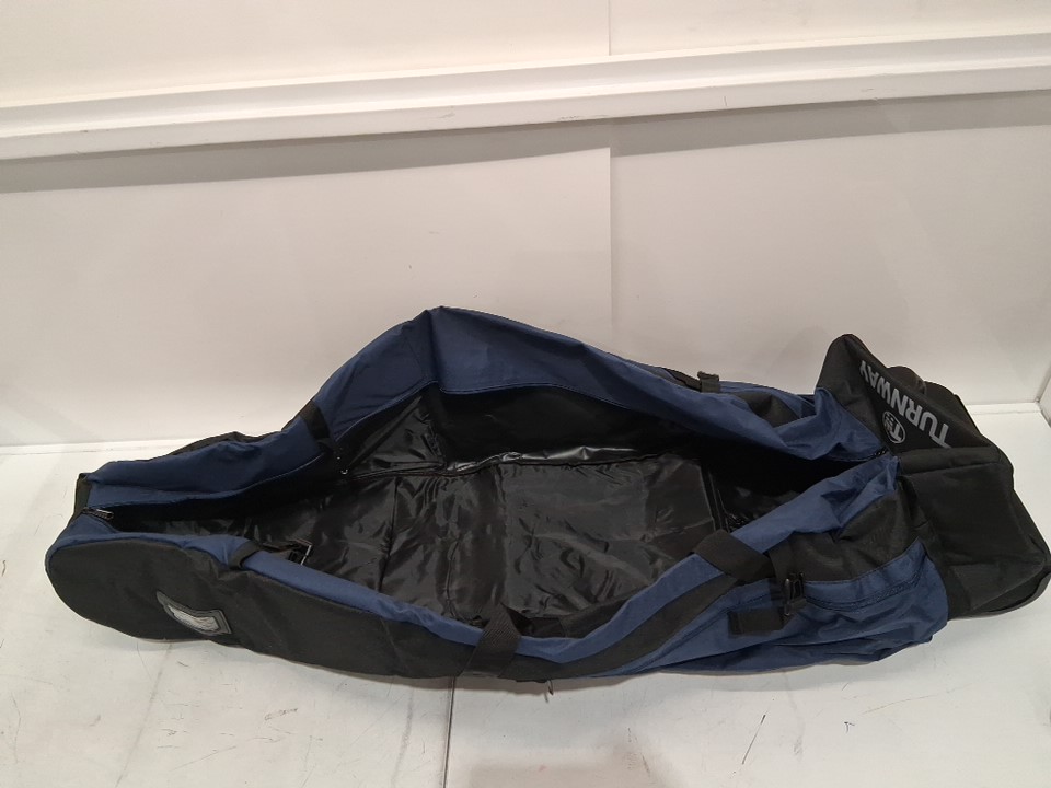 TURNWAY FOLDABLE TRAVEL BAG - HEAVY DUTY POLYESTER CARRY CASE WITH WHEELS FOR GOLF CLUBS - SOFT SIDED CUSHIONED CART FOR GEAR - NAVY BLUE