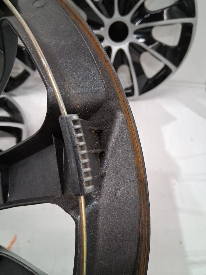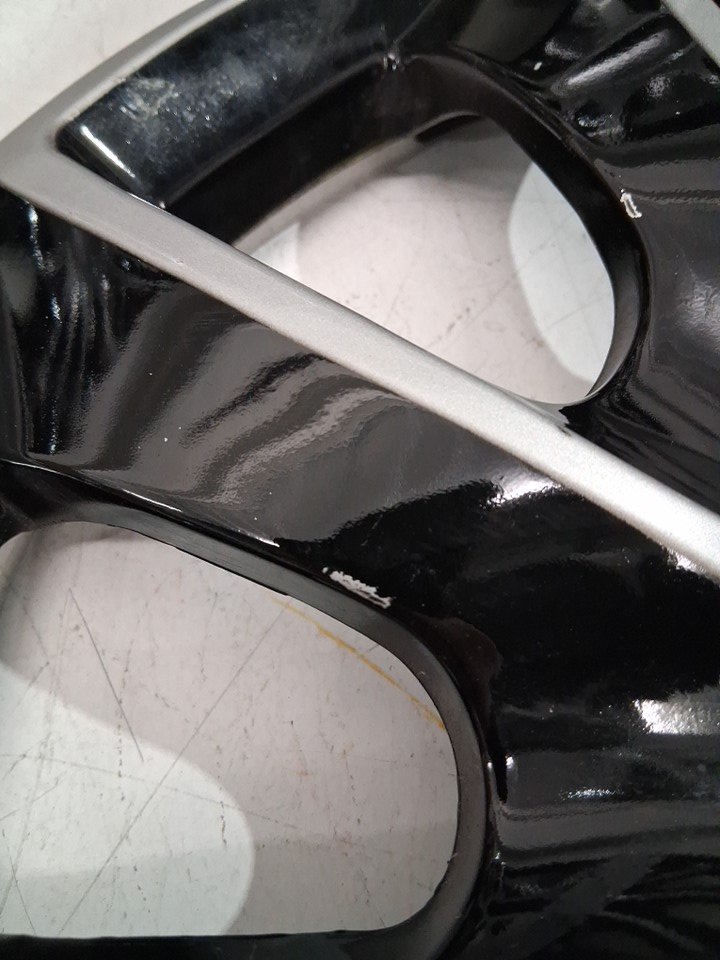 Light rust residue along the inside of the wheels and a small light spot in the paint on one of the caps (See photos)