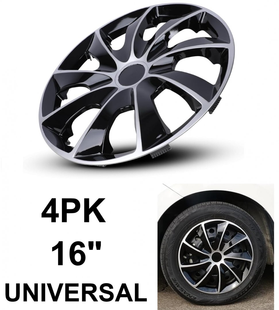 4pk WOLFSTORM universal Replacement Hubcaps - 16" - silver/black (Model: WJ-5084-DP-16)