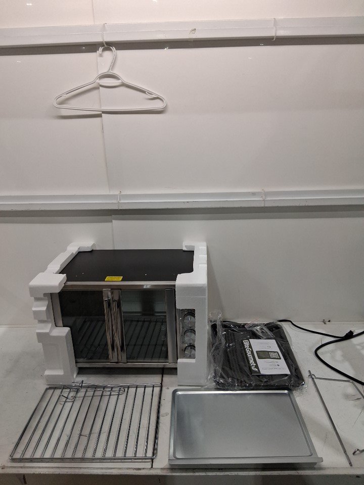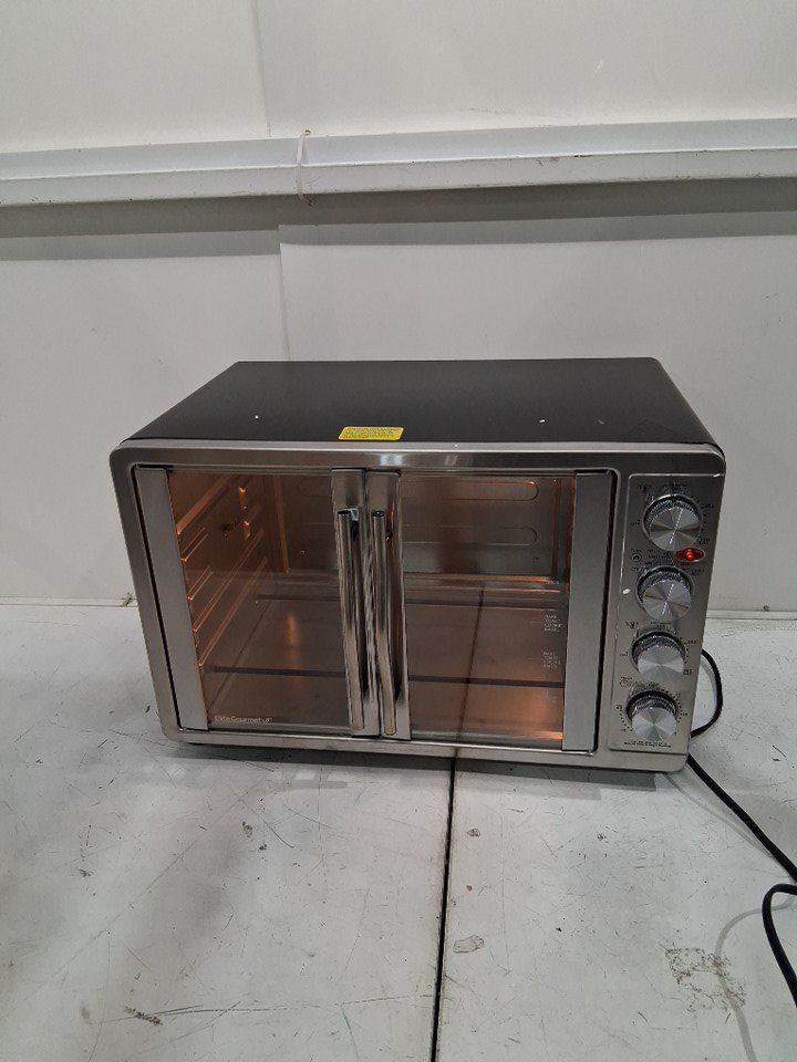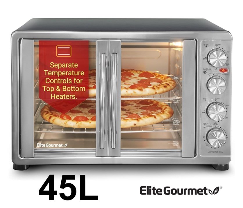 Elite Gourmet French Door 4-Control Knobs dual rack slide out trays - 45L - silver (model: ETO-4510M)