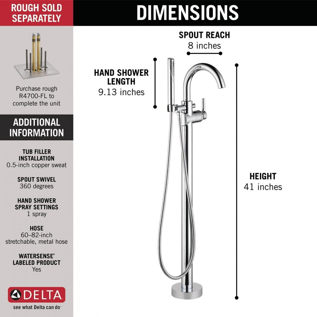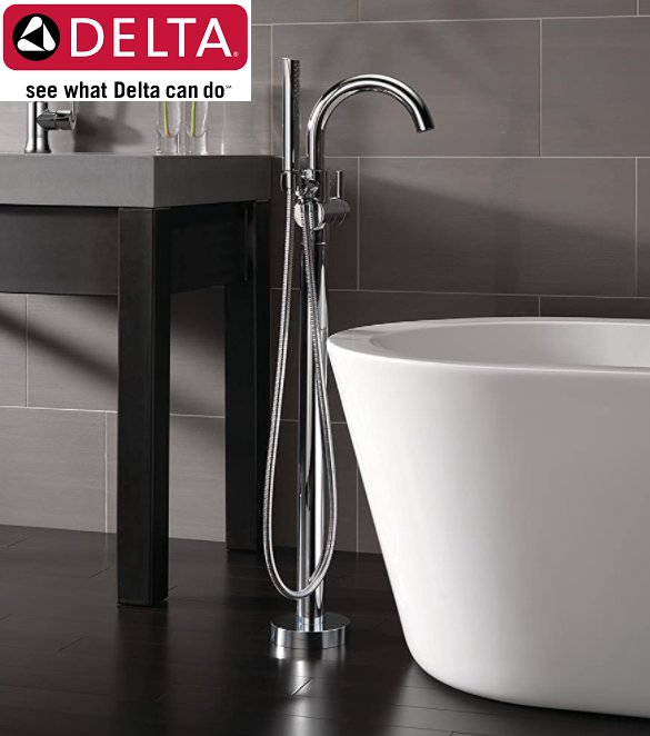 Delta Faucet Trinsic Floor-Mount Freestanding Tub Filler with Hand Held Shower, Chrome (Valve Not Included) - (T4759-FL)