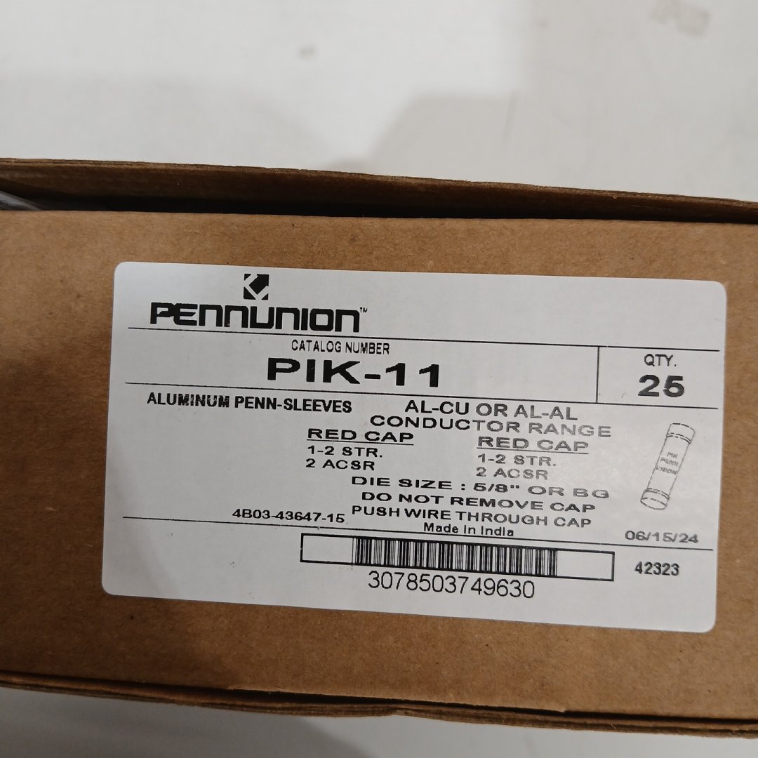 25PK PENN-UNION Aluminum Pre-Insulated Service Entrance Penn Sleeves , 1-2 STR Awg to 1-2 STR Awg - Red (PIK-11)