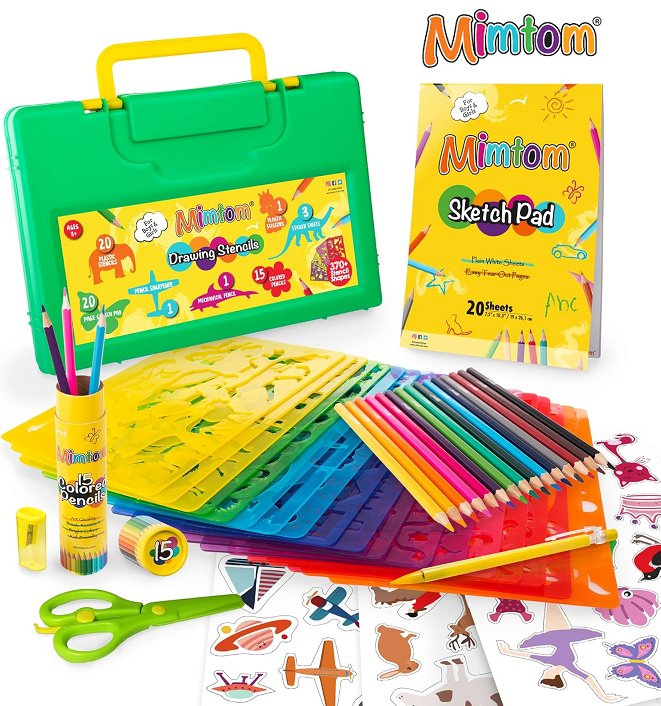 370PC+ MIMTOM DRAWING STENCILS ART KIT FOR KIDS, INCLUDES Sketch Pad, Colored Pencils AND More for DIY Arts and Crafts (Model: M01)