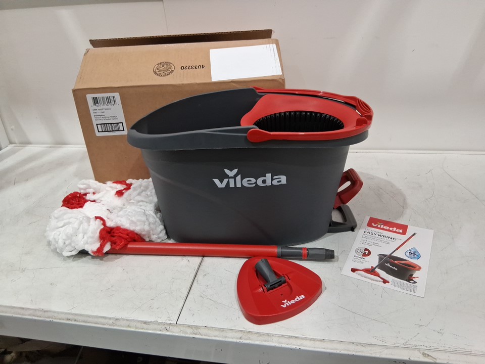 VILEDA EASYWRING POWER SPIN BUCKET SYSTEM WITH EXTENDABLE POLE and mop head - 22" to 48" - GREY/RED (MODEL: 172880)