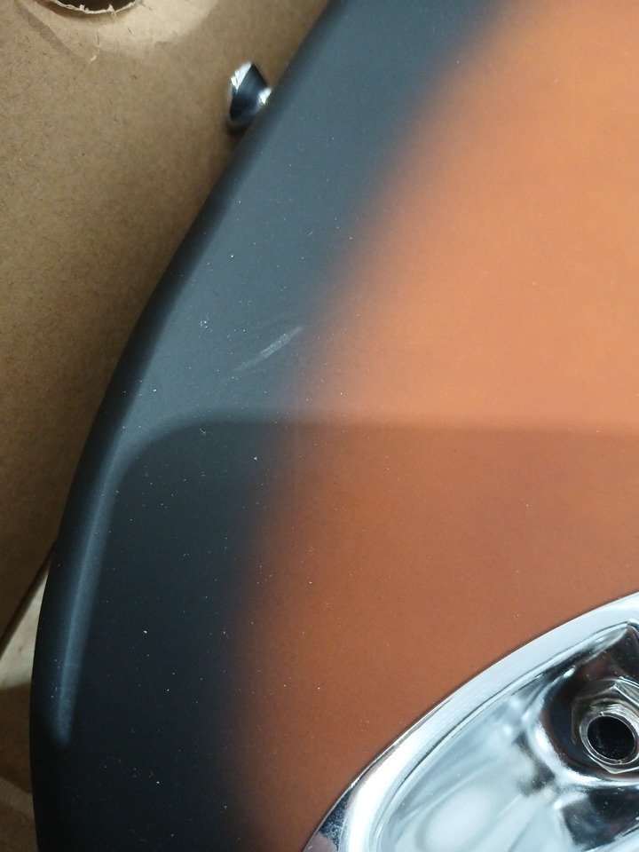appears brand new, but there is a very faint scuff on the bottom