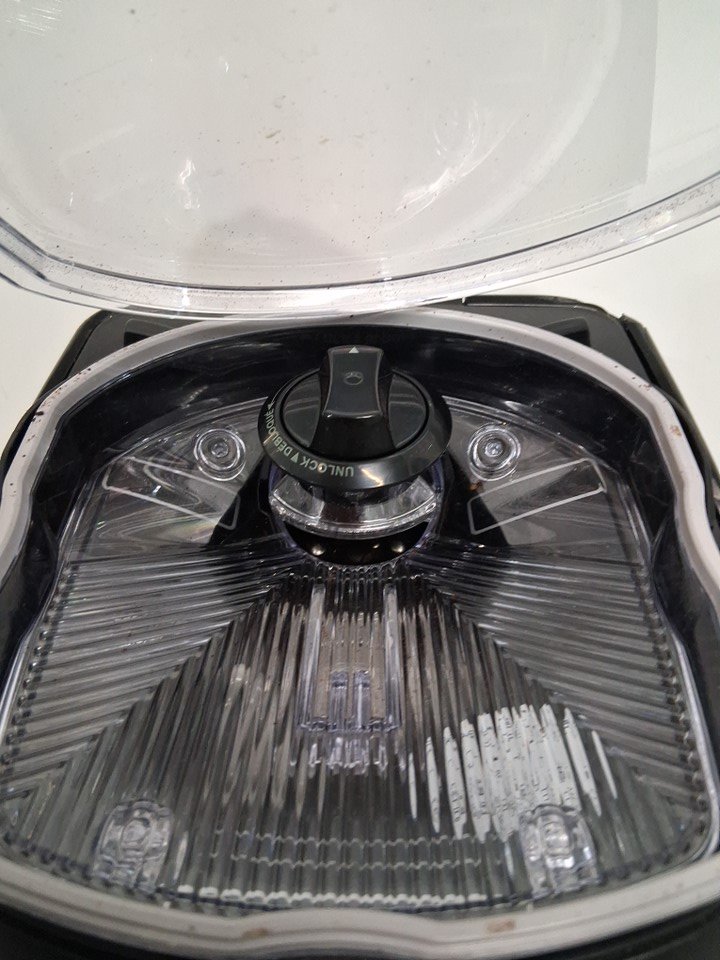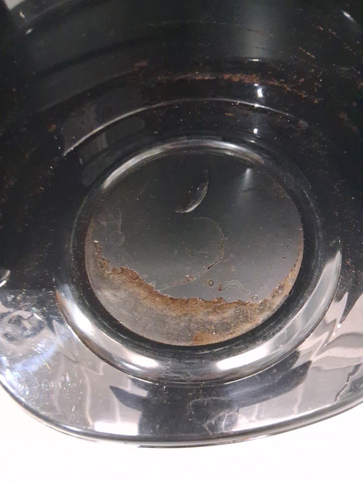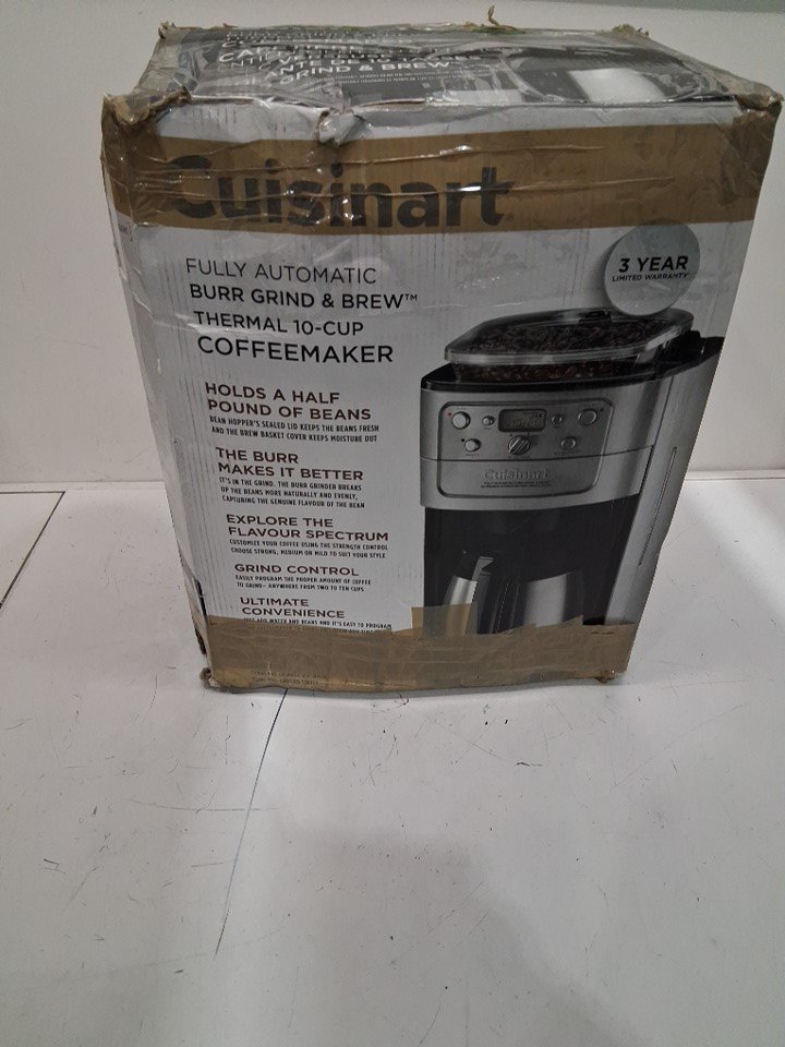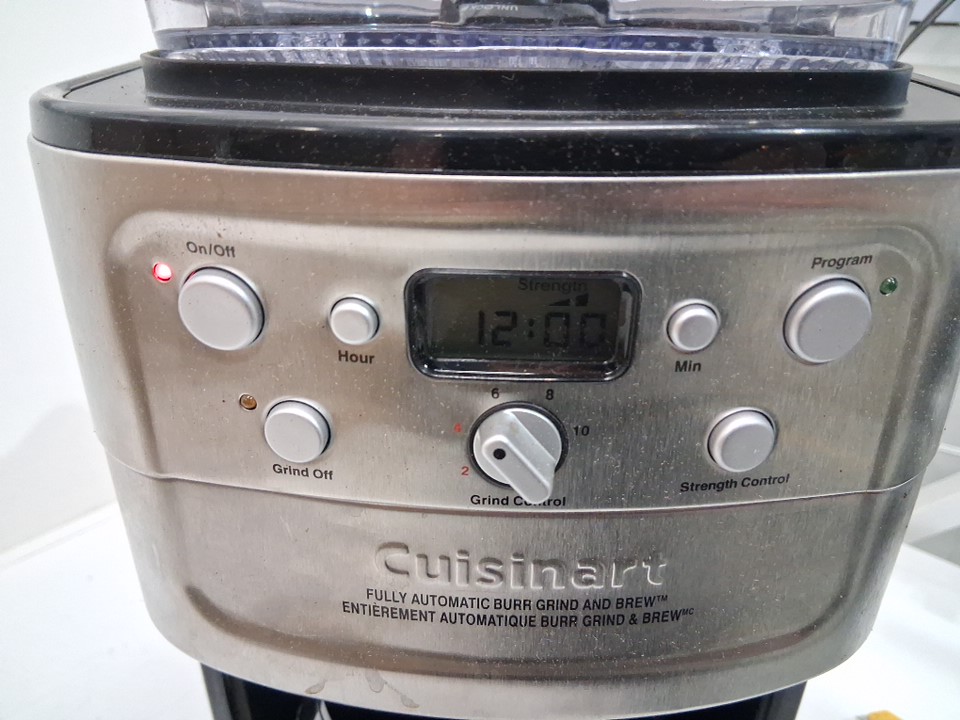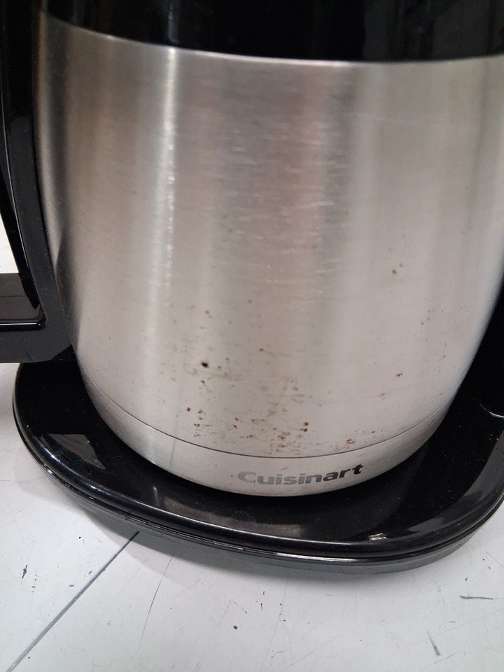 Item has coffee grounds/stains from prior use- There is a crack on the back right corner (see photos) Tested for basic power.