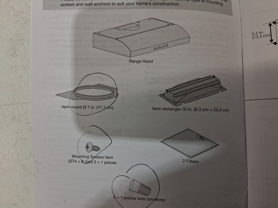 Please note item has some dirt marks/scuffing and some wood residue from previous handling. Item comes with two options for vent - round and rectangular and ours is missing the round vent. Item is also missing the hardware.