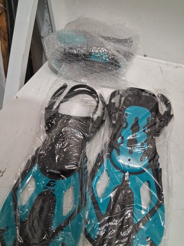 3pc EMSINA-Full Face Snorkel Mask fins Set - extra small - blue