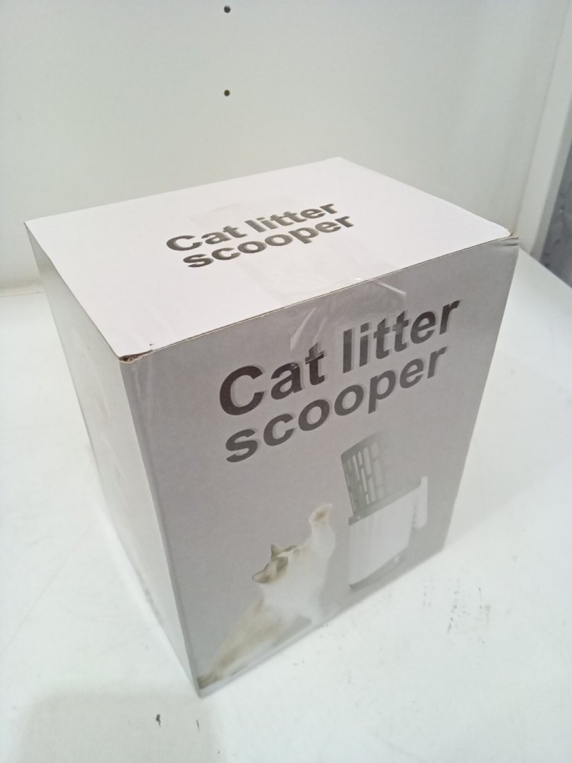 Cat Litter Box Scooper and Sifter with Built-in Bag Storage - White/Grey