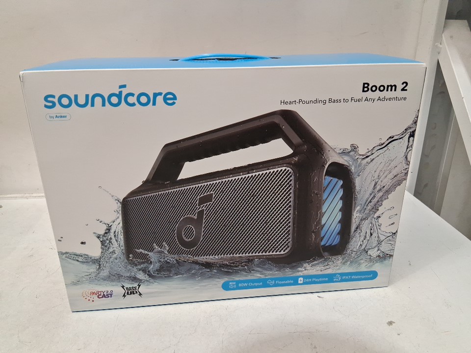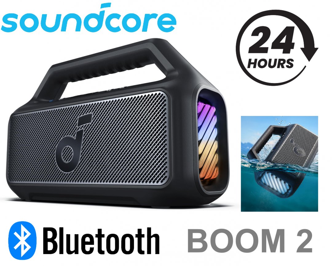 SOUNDCORE BOOM 2 BLUETOOTH OUTDOOR SPEAKER with rgb WATERPROOF SPEAKER WITH USB-C - BLACK (MODEL: A3138)