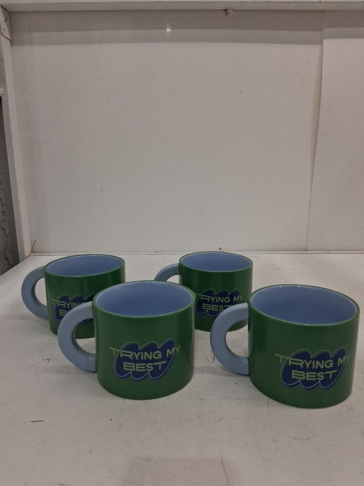 4 room essentials stoneware " trying my best " mug - 19oz - green/blue